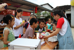 師生志愿隊用眼科模型向小朋友展示近視危害
