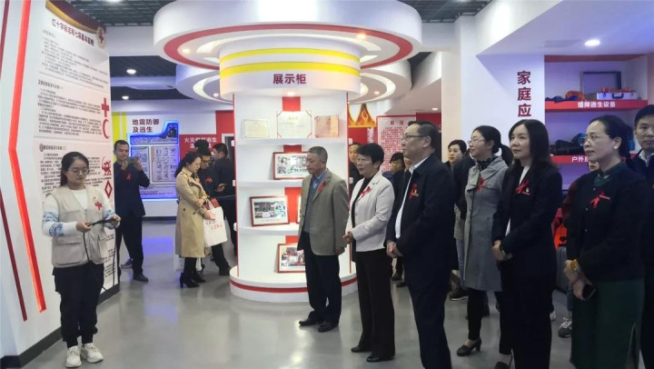 與會(huì)領(lǐng)導(dǎo)為紅十字生命教育體驗(yàn)學(xué)堂揭牌,為衛(wèi)職院的志愿者們頒發(fā)紅十字救護(hù)證、佩戴紅絲帶,并參觀生命教育體驗(yàn)學(xué)堂。
