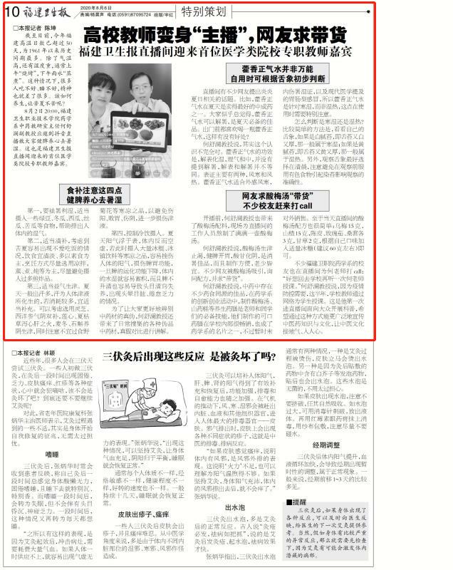 (福建衛(wèi)生報(bào) 2020年8月5日 第10版 特別策劃)
