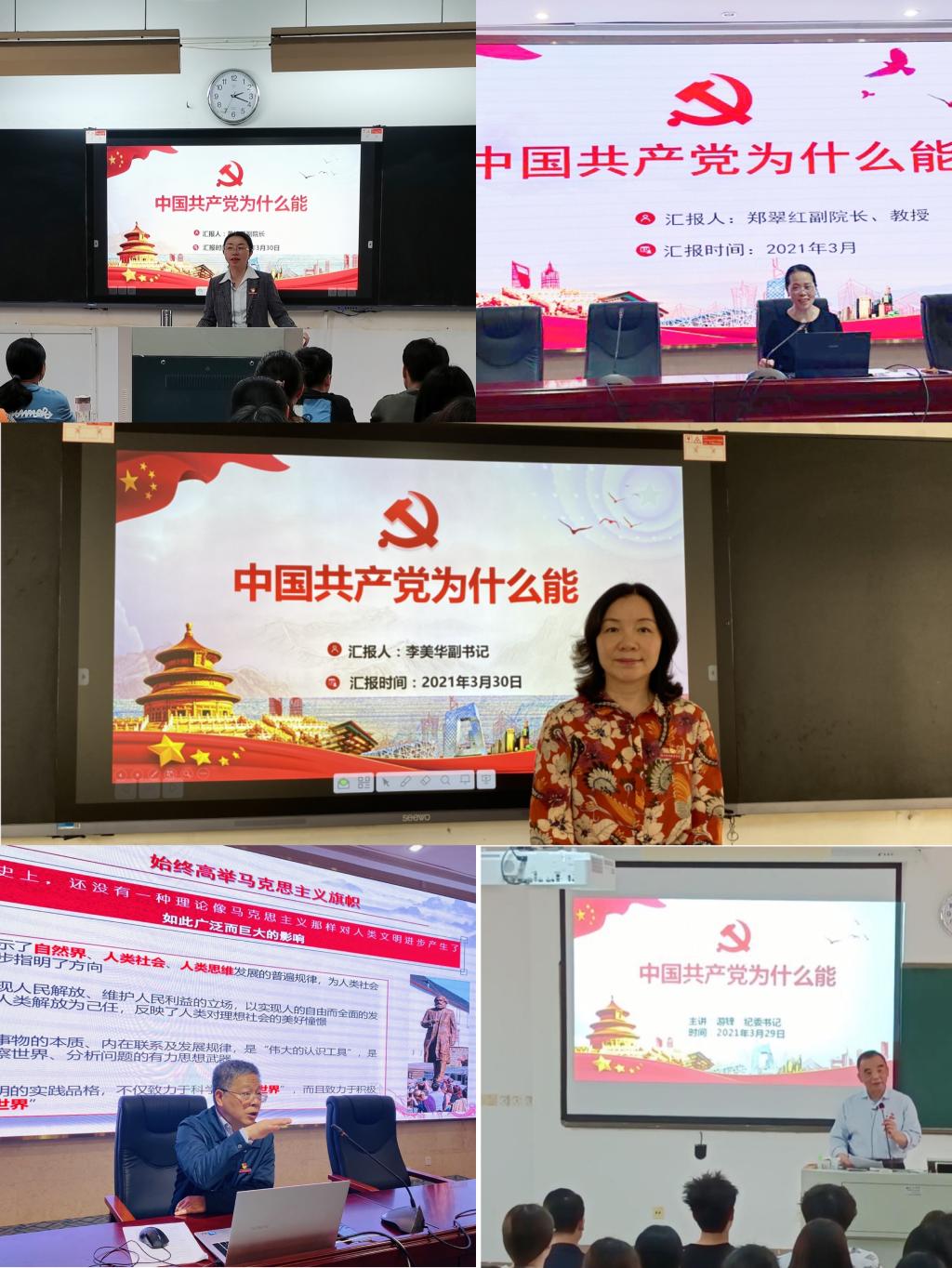黨委副書記李美華、紀(jì)委書記游鋒、副院長陳貞健、黃銘珊、鄭翠紅等校領(lǐng)導(dǎo)從中國共產(chǎn)黨具有科學(xué)的理論指導(dǎo)、堅(jiān)定的理想信念、強(qiáng)大的組織優(yōu)勢、堅(jiān)實(shí)的群眾基礎(chǔ)、徹底的自我革命等五個方面,全面闡述了中國共產(chǎn)黨創(chuàng)造中國奇跡的原因所在。校領(lǐng)導(dǎo)的開講,引起了我校師生的廣泛熱議。