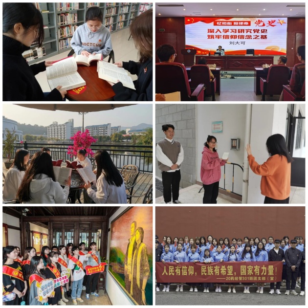 (一)個人自學(xué)。各團(tuán)支部推薦學(xué)習(xí)資料,組織同學(xué)們到校圖書館借閱黨的理論、黨的綱領(lǐng)、黨的章程等相關(guān)書籍,認(rèn)真學(xué)習(xí)黨史,了解黨情,在重溫初心中厚植人民情懷、在咀嚼苦難中堅定人生信仰、在偉人事跡中樹立人生榜樣。