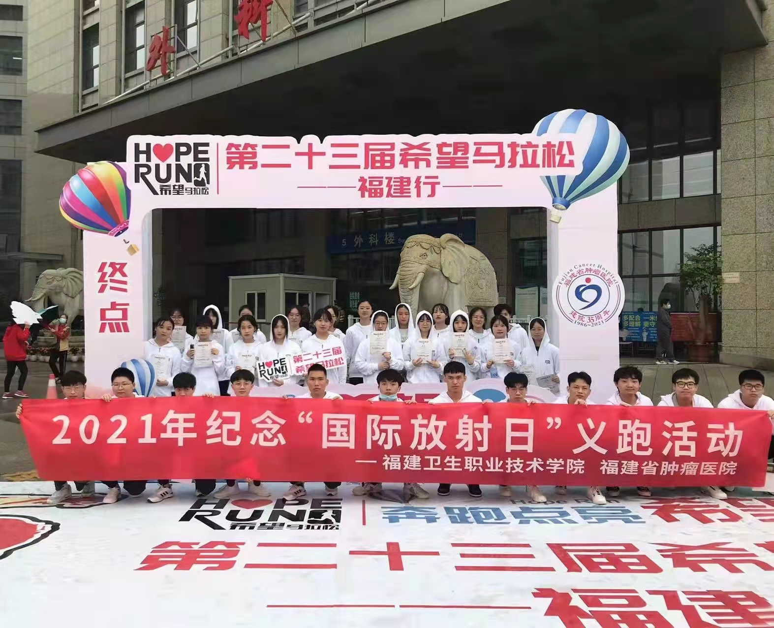 愛心義跑,點亮希望。11月6日,第二十三屆希望馬拉松(福建行)活動在福建省腫瘤醫(yī)院鳴槍開跑,學(xué)校醫(yī)學(xué)技術(shù)系放療班學(xué)子同社會愛心人士一起義跑,并積極參加賽會的志愿服務(wù)工作?,F(xiàn)場舉行了癌癥防治宣傳和咨詢活動,學(xué)子們身穿白衣,歌唱《我和我的祖國》,呼吁社會更多關(guān)注癌癥防治事業(yè),筑夢健康福建。