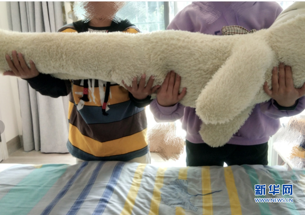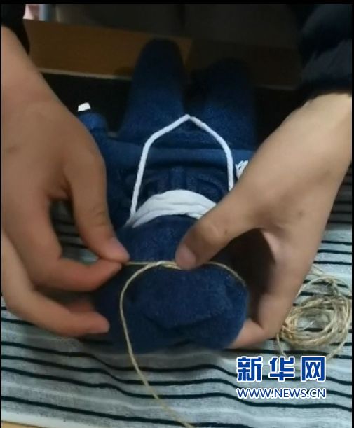 學(xué)生課后用毛巾自制玩偶練習(xí)頭圍測量。新華網(wǎng)發(fā)(林旭星 攝)