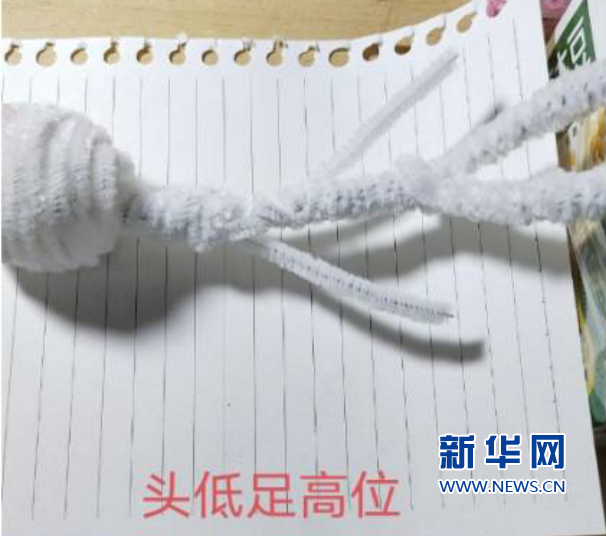 學(xué)生自制手工模擬臨床常用臥位。新華網(wǎng)發(fā)(林曉瓊 攝)