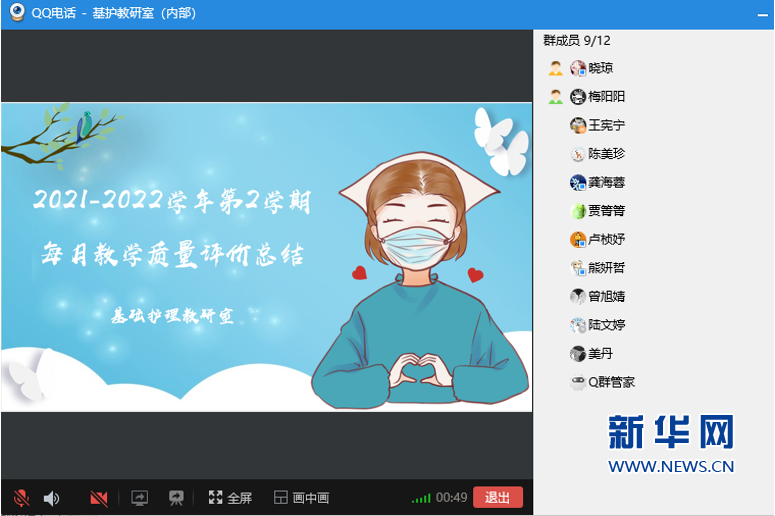 基礎(chǔ)護(hù)理教研室召開每月教學(xué)質(zhì)量評價(jià)總結(jié)線上會議。新華網(wǎng)發(fā)(林曉瓊 攝)