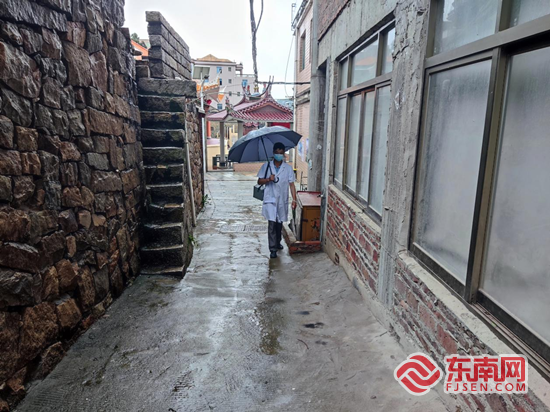 肖錦璋帶著藥箱冒雨入戶。蔡鋆澤 張曉燕 供圖