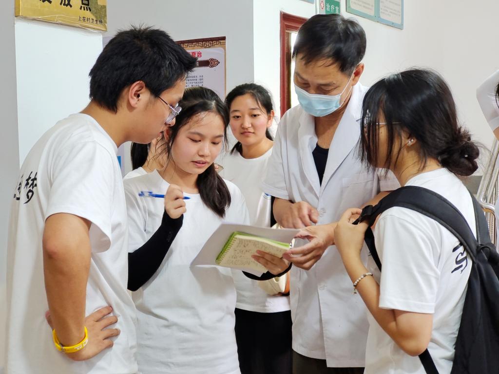 “思政+專業(yè)”是福建衛(wèi)職院思政實踐教學(xué)特色之一,在發(fā)揮專業(yè)所長的社會實踐中進(jìn)行思政價值引領(lǐng),讓實踐教學(xué)“接地氣”,讓思政元素“自然流露”,讓思政育人“水到渠成”?!靶聲r代醫(yī)學(xué)生如何助力健康中國戰(zhàn)略?”以此為切入點,24位醫(yī)學(xué)生為村民提供醫(yī)學(xué)咨詢、中醫(yī)推拿、示范培訓(xùn)、血壓測量、專家義診等醫(yī)療服務(wù),對預(yù)防高血壓、糖尿病等慢性病、常見病進(jìn)行健康科普,在“我為群眾辦實事”中踐行醫(yī)者初心,體悟醫(yī)者使命?!拔覑廴税c瘓臥床,他要是能來現(xiàn)場就好了!”活動現(xiàn)場村民江本松的妻子感慨到。實踐隊了解情況后,從家里接來了江本松老人,在詳細(xì)了解病情之后,為其進(jìn)行肢體的被動活動和四肢牽伸,并細(xì)致提供康復(fù)保健建議?,F(xiàn)場“插曲”成為了生動鮮活的育人育才素材。通過愛心義診,隊員們深有感悟:所謂“醫(yī)者藝也,醫(yī)者仁也”,將醫(yī)學(xué)探究到極致,從而惠及眾生是我們作為未來醫(yī)者的畢生所求,我們應(yīng)精進(jìn)醫(yī)學(xué)技術(shù),不斷提升服務(wù)態(tài)度,為患者身體健康保駕護(hù)航,為祖國醫(yī)學(xué)事業(yè)的發(fā)展盡綿薄之力。