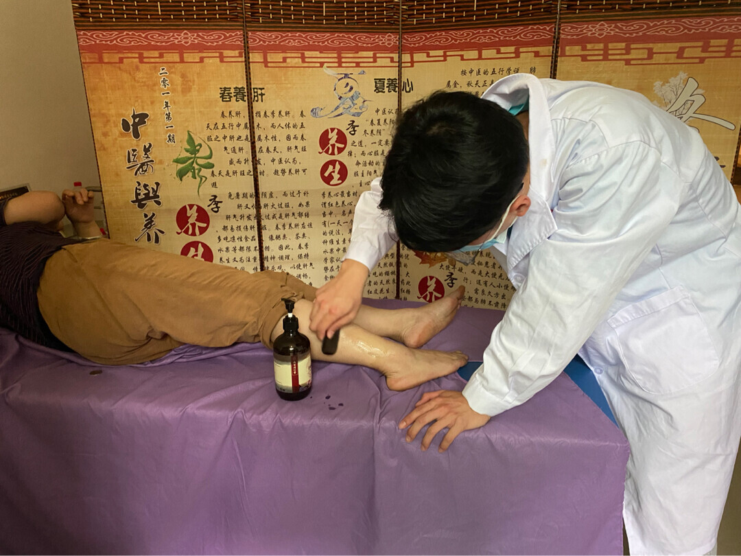 圖為幫助村民刮痧,起到活血化淤,補(bǔ)中益氣的作用。中國青年網(wǎng)通訊員 趙夢雅 攝