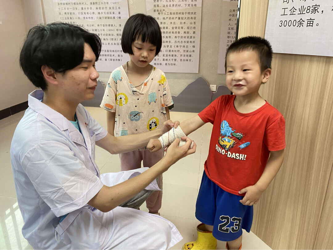 中國青年網(wǎng)寧德7月25日電(通訊員 蓋小寶)6月29日上午,為響應(yīng)暑期三下鄉(xiāng)實踐活動,福建衛(wèi)生職業(yè)技術(shù)學(xué)院“閩衛(wèi)實踐隊”小分隊在暑期社會實踐期間奔赴福建省寧德市壽寧縣下黨鄉(xiāng)開展以“喜迎二十大 永遠(yuǎn)跟黨走 奮進(jìn)新征程”為主題的社會實踐活動。今日開展了中醫(yī)推拿拔罐刮痧,測量血壓,假人心肺復(fù)蘇教學(xué)和創(chuàng)傷包扎教學(xué)以及慰問老黨員的活動。此活動旨在幫助村民了解急救知識,以及通過義診緩解村民的疲勞。