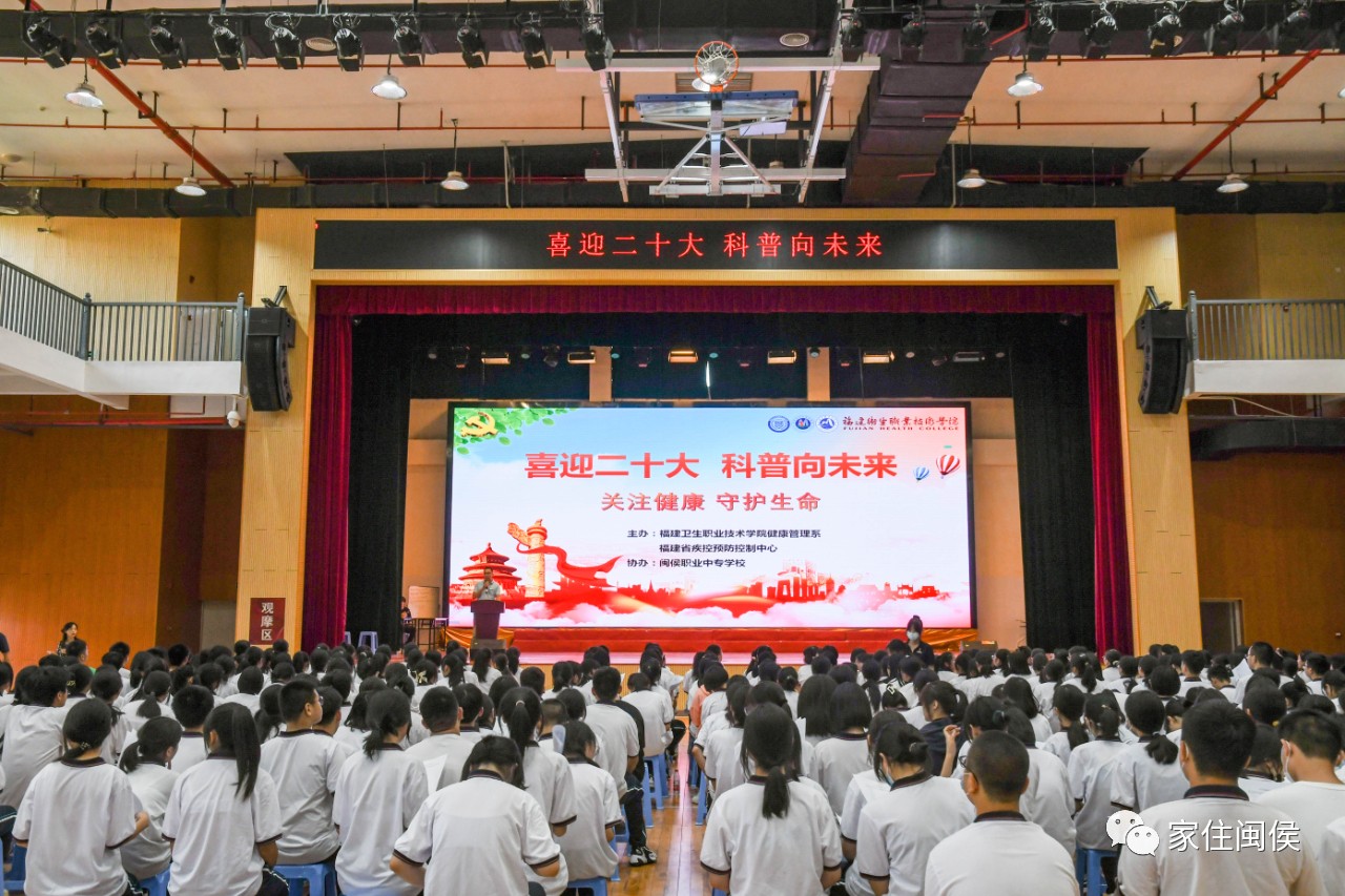 今日,由福建省疾病預(yù)防控制中心、福建衛(wèi)生職業(yè)技術(shù)學(xué)院健康管理系主辦,閩侯職業(yè)中專學(xué)校協(xié)辦的“喜迎二十大 科普向未來 關(guān)注健康 守護生命”健康科普活動在閩侯職業(yè)中專學(xué)校舉辦。