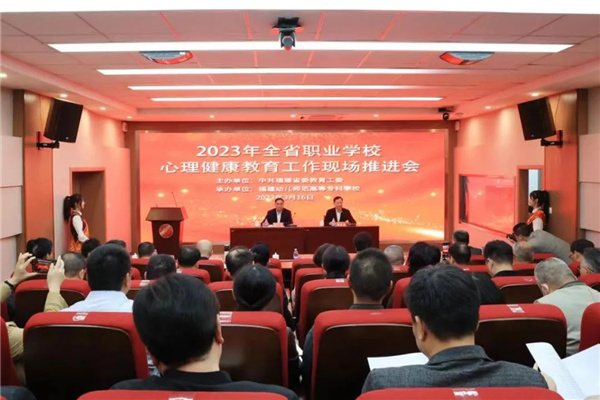 “作為福建省高校學生心理健康教育工作基本建設標準示范校,我們面向全體學生開展積極心理教育,全面培育學生積極的心理品質(zhì)。注重將心理健康教育與美育、體育、傳統(tǒng)文化相結合,在專業(yè)課程教學中融入心理健康教育。”福建幼兒師范高等??茖W校黨委書記鮑仕梅為大家介紹了學校多元融合推進學校心理健康教育工作的思路和做法。福州、莆田市委教育工委,福建衛(wèi)生職業(yè)技術學院、福建工業(yè)學校也結合本地本校實際,相繼在推進會上交流分享了職業(yè)學校心理健康教育工作的經(jīng)驗和做法。