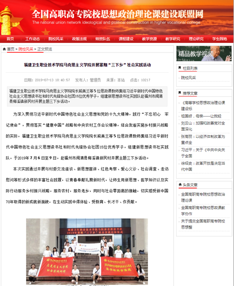 全國(guó)高職高專思政課建設(shè)聯(lián)盟網(wǎng)7月13日院校風(fēng)采