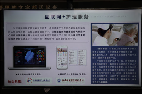 峰會現(xiàn)場7號館的國家衛(wèi)健委展區(qū),福建衛(wèi)生職業(yè)技術(shù)學(xué)院展出的互聯(lián)網(wǎng)醫(yī)養(yǎng)康護(hù)服務(wù)平臺