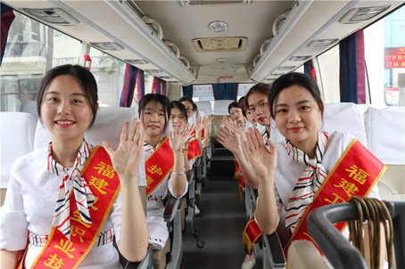 五一期間,志愿者就開始接受培訓(xùn)。5月3日上午7點,福建衛(wèi)生職業(yè)技術(shù)學(xué)院護(hù)理系黨總支書記謝濤和志愿者們出發(fā)前往長樂分論壇。經(jīng)過前期通用知識、形象禮儀和崗位技能培訓(xùn),3日的會議演練每位志愿者都展現(xiàn)了良好的精神面貌。為了保障學(xué)生安全,學(xué)校在離長樂分會場1公里的地方安排學(xué)生住宿。