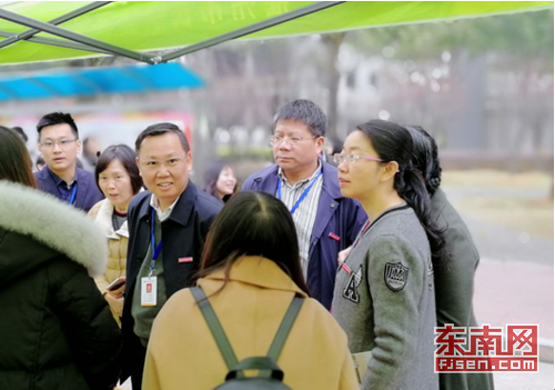 學(xué)校領(lǐng)導(dǎo)前往招聘會(huì)現(xiàn)場(chǎng)與用人單位、學(xué)生交流