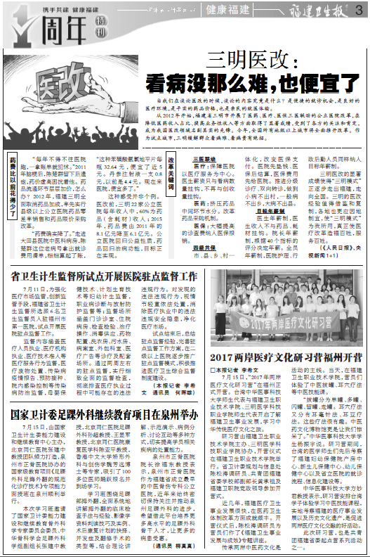 (福建衛(wèi)生報(bào) >> 2017年7月20日 第28期 總第2671期 >> 第3版 健康福建 )