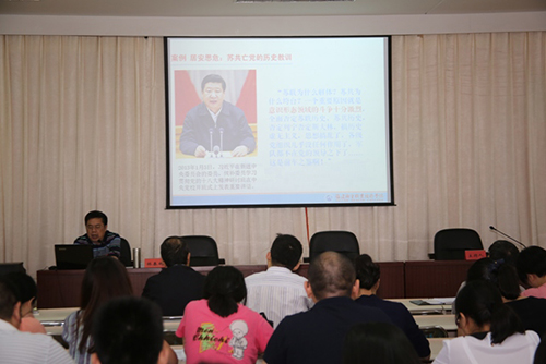 林書記從開展“兩學(xué)一做”、強(qiáng)化黨員意識,堅(jiān)持“三個(gè)導(dǎo)向”、明確學(xué)習(xí)要求,立足崗位履職、提升學(xué)習(xí)成效3個(gè)方面闡述了“兩學(xué)一做”學(xué)習(xí)教育的背景、內(nèi)涵、目的意義和總體要求,重點(diǎn)闡述了為何突出問題導(dǎo)向、責(zé)任導(dǎo)向、紀(jì)律導(dǎo)向,解決實(shí)際問題、注重黨員擔(dān)當(dāng)、嚴(yán)謹(jǐn)作風(fēng)黨風(fēng)。