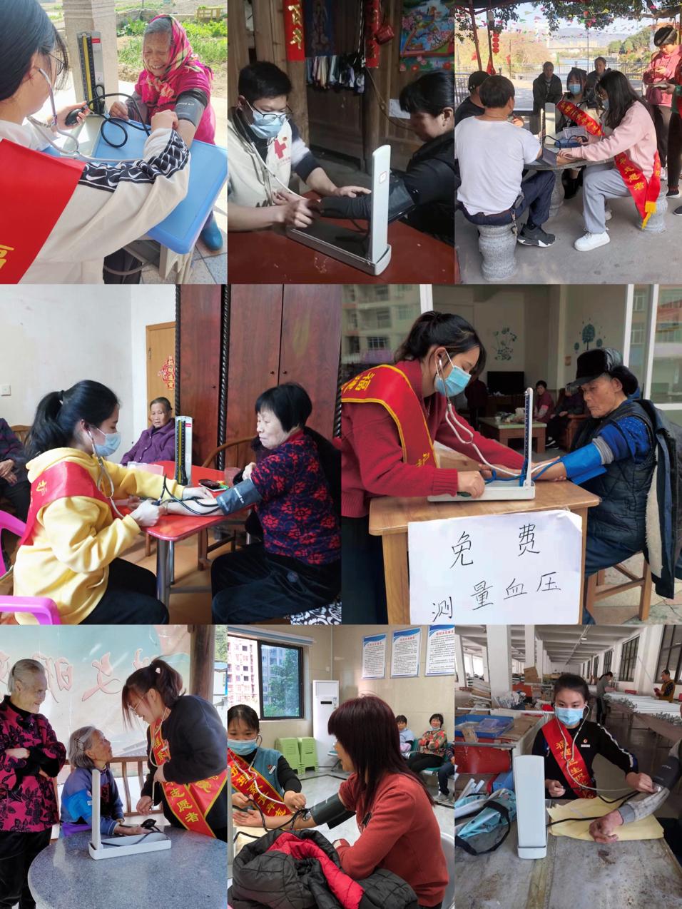 “來,阿姨,排好隊(duì),保持安靜,我們一個個來哦……”, “大哥,您之前都沒測過血壓是嗎?沒關(guān)系,您放松,我給您測一下”,“爺爺,您的血壓是134/76mmHg,血壓保持的很好呀,要繼續(xù)堅(jiān)持每天按時吃藥哦”,“奶奶,您現(xiàn)在的血壓有點(diǎn)高,您剛剛走路了是嗎,沒關(guān)系,我明天早上去您家給您測量好嗎?我放假期間每天都在家的,您想測量時,叫一聲,我就來啦”……庚子鼠年春節(jié)之際,在村口、在鄉(xiāng)民家里經(jīng)常可以看到穿著志愿者馬甲、披著志愿者綬帶的護(hù)理學(xué)子,微笑、耐心的為鄉(xiāng)民們測量血壓。
