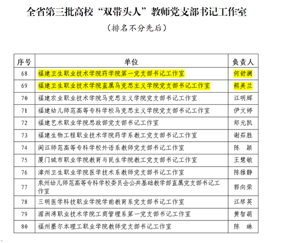 近日,省委教育工委公布了第三批高校“雙帶頭人”教師黨支部書(shū)記工作室培育建設(shè)名單,我校藥學(xué)院第一黨支部和直屬馬克思主義學(xué)院黨支部?jī)蓚€(gè)工作室成功入選。這是繼我校6個(gè)黨組織入選全省黨建工作標(biāo)桿院系、樣板支部培育創(chuàng)建單位后,持續(xù)推進(jìn)新時(shí)代高校黨建示范創(chuàng)建和質(zhì)量創(chuàng)優(yōu)工作取得的新成效。