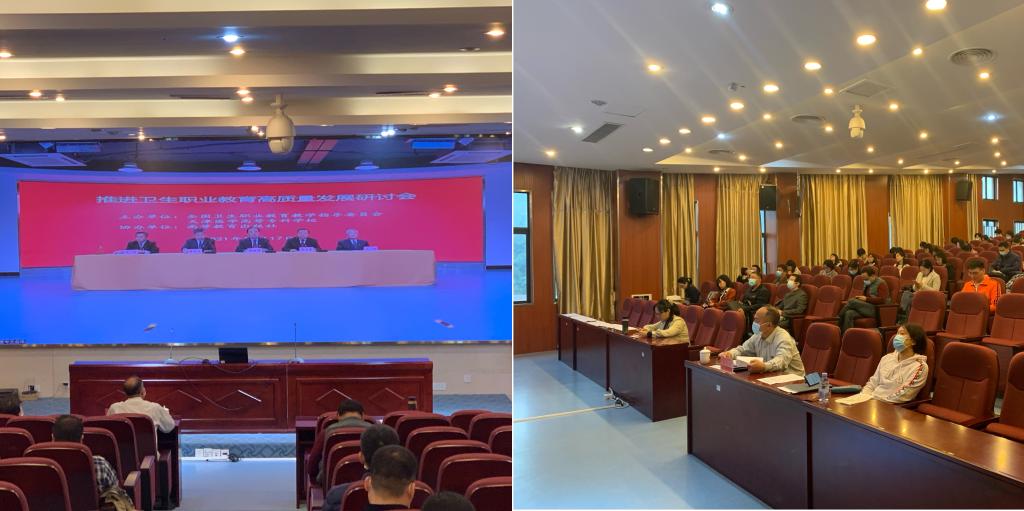 會(huì)議首先宣布成立衛(wèi)生職業(yè)院校思政教育聯(lián)盟、衛(wèi)生職業(yè)院校課程建設(shè)高質(zhì)量發(fā)展聯(lián)盟、職業(yè)院校衛(wèi)生健康協(xié)作體。隨后,教育部職業(yè)技術(shù)教育中心研究所副所長(zhǎng)曾天山、高等教育出版社高職事業(yè)部副主任洪國(guó)芬作主旨報(bào)告。作為聯(lián)盟成員理事單位,我校將與兄弟院校共同努力,積極推動(dòng)衛(wèi)生職業(yè)教育高質(zhì)量發(fā)展,形成“共育、共研、共建、共享”新格局。同日下午,衛(wèi)生職業(yè)院校思政教育分論壇、衛(wèi)生職業(yè)院校課程建設(shè)高質(zhì)量發(fā)展分論壇、衛(wèi)生職業(yè)院校服務(wù)健康中國(guó)發(fā)展分論壇同步舉行,各院校圍繞衛(wèi)生職業(yè)院校思政教育、“三教”改革、健康服務(wù)等方面進(jìn)行線上交流與研討。