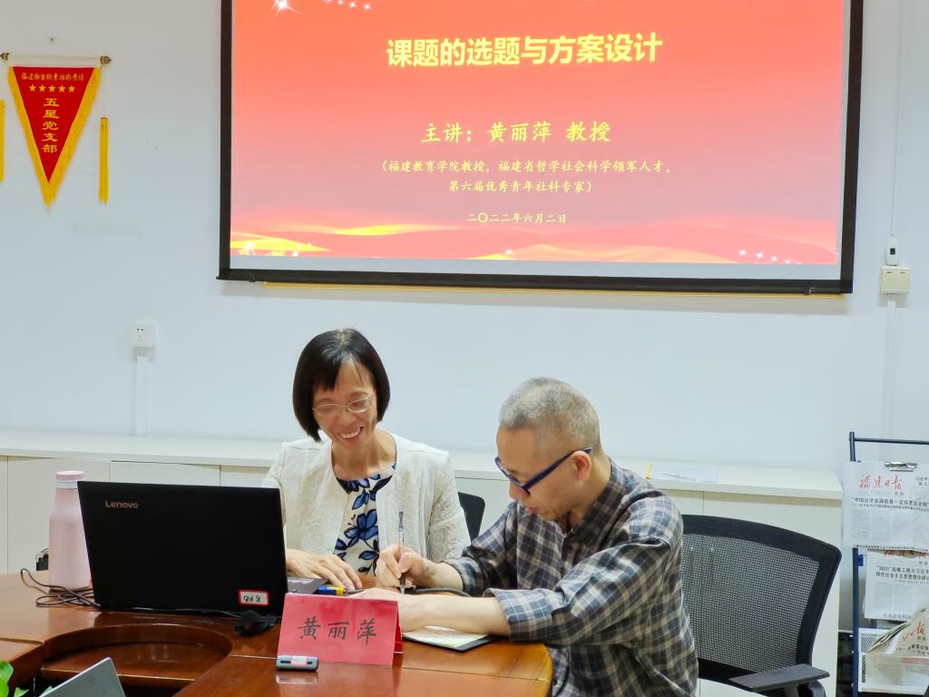 為全面提升我校思政課教師科研項(xiàng)目申報(bào)質(zhì)量,有效推進(jìn)課題研究工作,促進(jìn)教師專業(yè)化成長(zhǎng)。2022年6月2日,我校馬克思主義學(xué)院邀請(qǐng)福建省哲學(xué)社會(huì)科學(xué)領(lǐng)軍人才、福建教育學(xué)院黃麗萍教授為全體專兼職思政課教師作《課題的選題與方案設(shè)計(jì)》專題講座。講座由馬克思主義學(xué)院副院長(zhǎng)來朋珍主持。