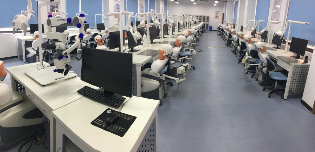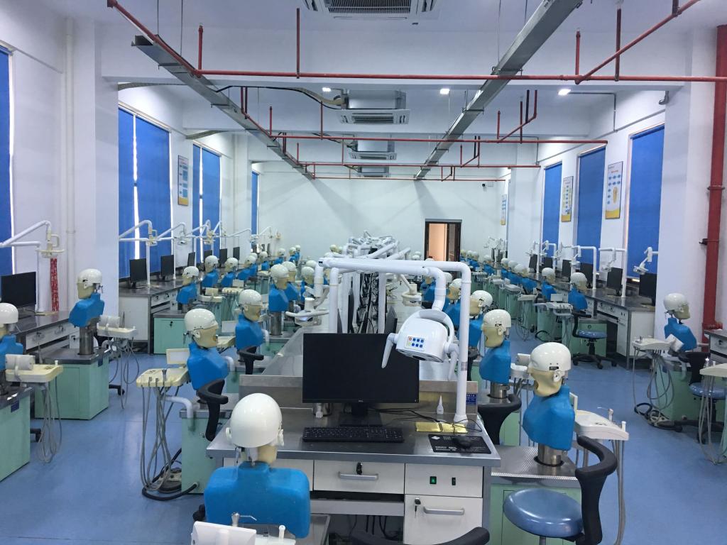 校內(nèi)實(shí)訓(xùn)基地面積達(dá)700平方米,包含口腔綜合實(shí)訓(xùn)室、口腔模擬診室、口腔修復(fù)工藝室及門診部口腔科等,擁有100套對(duì)接臨床的仿頭模教學(xué)系統(tǒng),教學(xué)設(shè)備總值為800多萬元,為學(xué)生開展各項(xiàng)實(shí)訓(xùn)對(duì)接口腔臨床工作任務(wù)提供了堅(jiān)實(shí)的基礎(chǔ)。