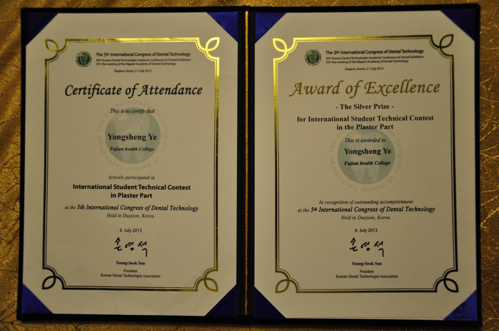 學(xué)生獲第五屆國際口腔技師學(xué)術(shù)大會(huì)(韓國)