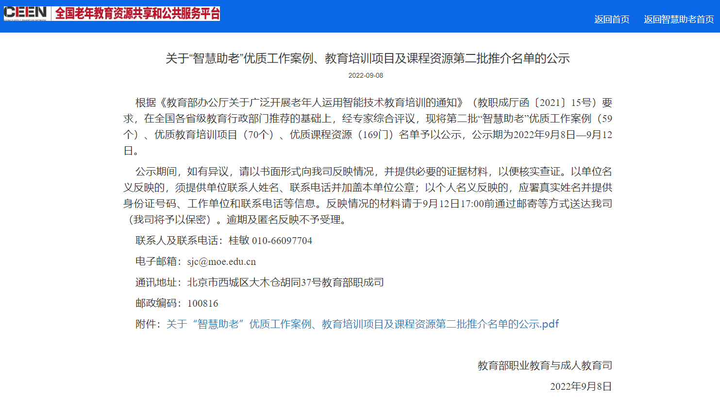 喜報(bào) | 我校成功入選教育部2022年第二批 “智慧助老”課程資源推介名單