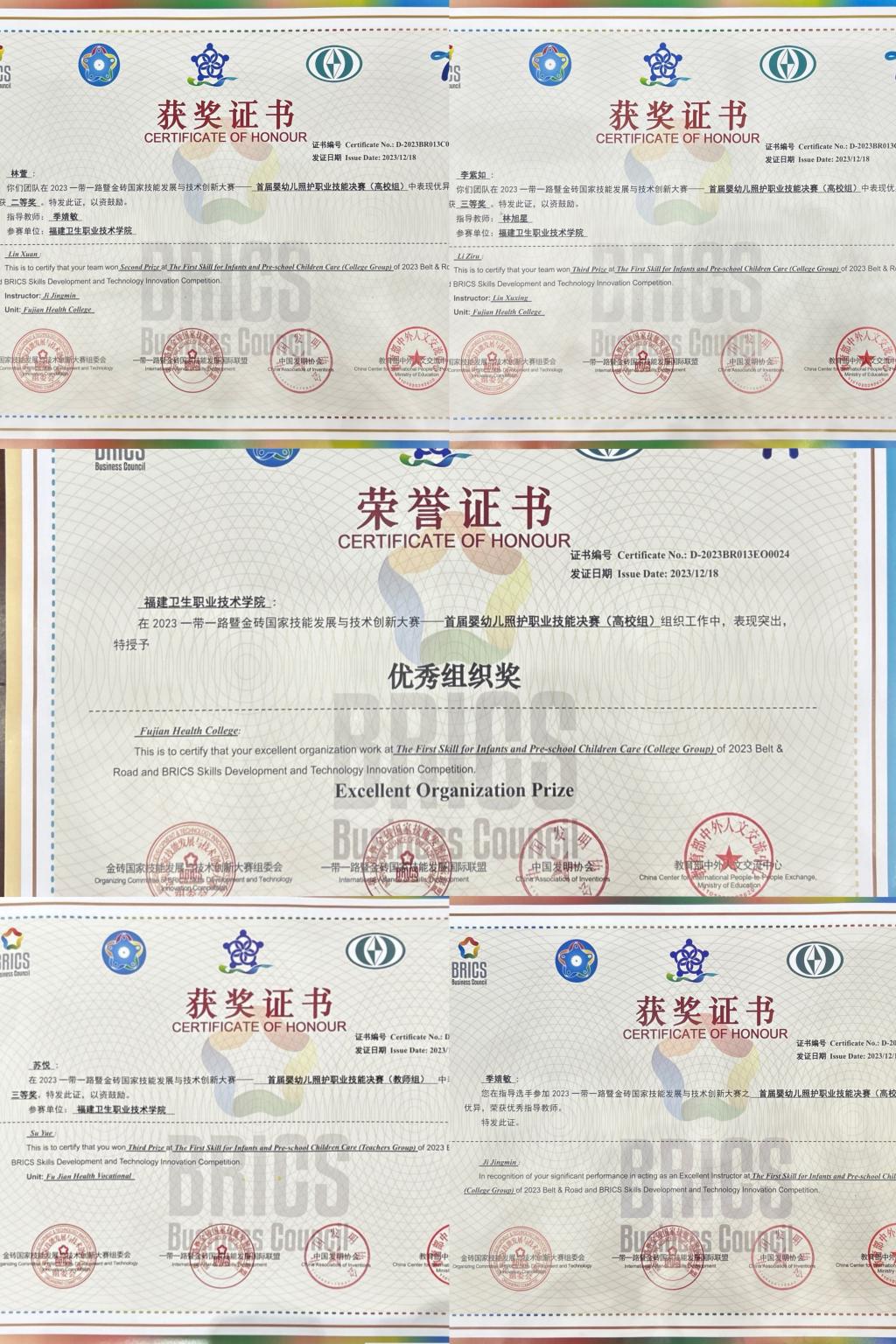 2023年12月14日至18日,2023一帶一路暨金磚國(guó)家技能發(fā)展與技術(shù)創(chuàng)新大賽——嬰幼兒照護(hù)職業(yè)技能賽項(xiàng)決賽在岳陽(yáng)職業(yè)技術(shù)學(xué)院開(kāi)賽。本次大賽由金磚國(guó)家工商理事會(huì)中方理事會(huì)、一帶一路暨金磚國(guó)家技能發(fā)展國(guó)際聯(lián)盟、中國(guó)科協(xié)一帶一路暨金磚國(guó)家技能發(fā)展與技術(shù)創(chuàng)新培訓(xùn)中心主辦,中國(guó)發(fā)明協(xié)會(huì)與教育部中外人文交流中心聯(lián)合主辦,金磚國(guó)家工商理事會(huì)(中方)技能發(fā)展工作組承辦,來(lái)自全國(guó)164所院校的三百余名選手共聚岳陽(yáng),展開(kāi)激烈的角逐。我校護(hù)理學(xué)院2021級(jí)嬰幼兒托育服務(wù)與管理專業(yè)林萱、李紫如喜獲高校組二等獎(jiǎng)、三等獎(jiǎng),蘇悅老師獲得教師組三等獎(jiǎng)。我校獲得優(yōu)秀組織獎(jiǎng),季婧敏老師獲得優(yōu)秀指導(dǎo)教師獎(jiǎng)。