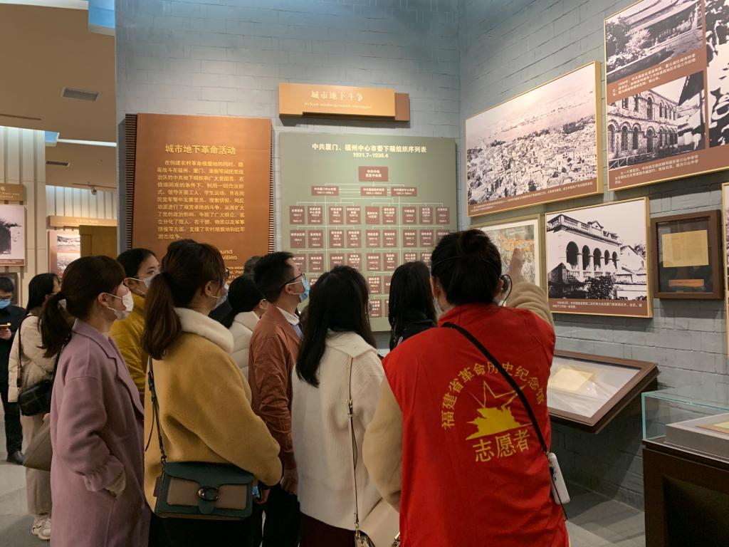 大家在紀(jì)念館講解員聲情并茂的講解下,參觀了《紅色福建》展區(qū),重溫了福建人民在辛亥革命、工農(nóng)運(yùn)動(dòng)與北伐、土地革命、創(chuàng)建蘇區(qū)、紅軍長(zhǎng)征、抗日戰(zhàn)爭(zhēng)、解放戰(zhàn)爭(zhēng)中的革命歷史,深刻地被福建革命先烈為民族獨(dú)立和解放戰(zhàn)爭(zhēng)不怕犧牲、英勇斗爭(zhēng)、浴血奮戰(zhàn)的氣概所折服,進(jìn)一步堅(jiān)定了理想信念,增強(qiáng)了黨員先鋒意識(shí)。