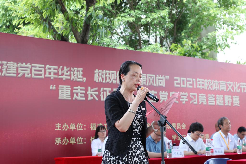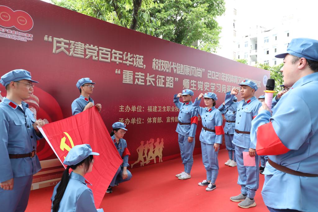 在開幕式上,副院長鄭翠紅致辭,在中國共產(chǎn)黨成立100周年之際,我們以“答黨史、急行軍”的特殊方式,重走長征路,重溫那段可歌可泣的歷史,領(lǐng)悟偉大的長征精神,在新的長征路上繼續(xù)奮勇前進。她希望參賽師生賽出信念和忠誠,跟黨走,踐行“教書育人”的職責(zé),不負(fù)人民所托,走好職業(yè)教育的長征路;賽出知識和本領(lǐng),養(yǎng)成自學(xué)、好學(xué)的習(xí)慣,深入學(xué)習(xí)黨史、以史鑒今、以史增智,在各自的崗位上掌握新方法、增長新才干、解決新問題;賽出快樂和友情,不僅“堅韌不拔,自強不息,勇往直前”,也要“顧全大局、嚴(yán)守紀(jì)律、親密團結(jié)”。
