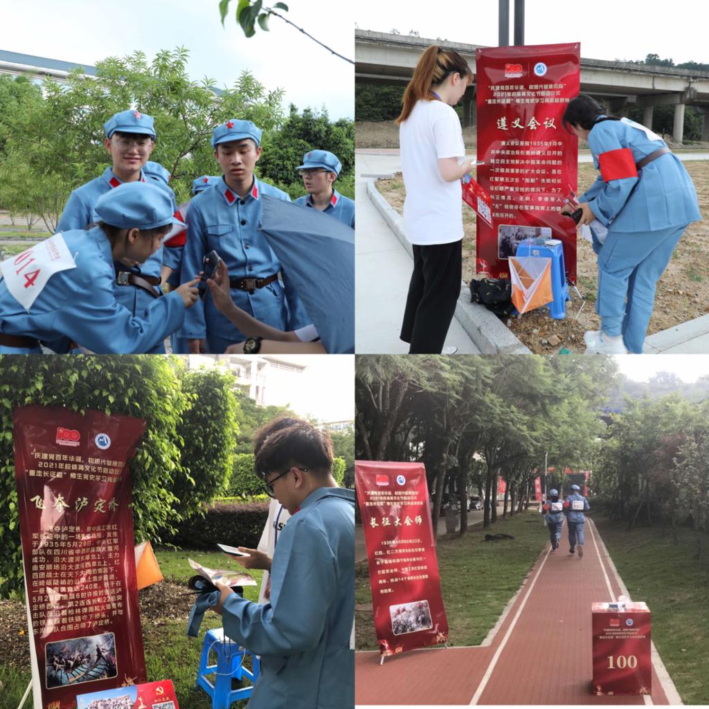 師生們在“湘江”、“赤水”、“金沙江”、“瀘定橋”、“岷山”等以紅軍長征中的重大歷史事件發(fā)生地命名的打卡點中穿梭。