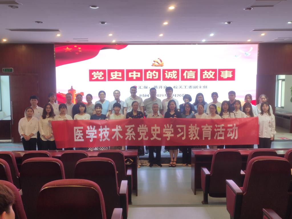 2021年5月20日,校關(guān)工委黃開良副主任為醫(yī)學(xué)技術(shù)系師生黨員上黨課,本次黨課在實習(xí)樓舉行,由醫(yī)學(xué)技術(shù)系黨總支書記陳俊穎主持,系部黨員教師和131名入黨積極分子參會。