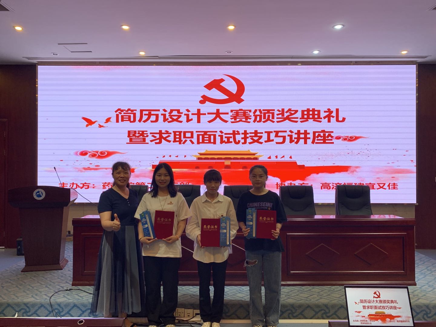2021年6月10日,藥學(xué)院第二黨支部黨員、高濟(jì)福建宜又佳醫(yī)藥有限責(zé)任公司代表及藥學(xué)院各個(gè)專業(yè)的180位同學(xué)參加了于實(shí)訓(xùn)樓四樓會(huì)議室舉辦的簡(jiǎn)歷設(shè)計(jì)大賽頒獎(jiǎng)典禮暨求職面試技巧講座。本次簡(jiǎn)歷設(shè)計(jì)大賽共計(jì)收到學(xué)生簡(jiǎn)歷作品337份,經(jīng)過(guò)專家組的評(píng)選,最終確定一等獎(jiǎng)、二等獎(jiǎng)、三等獎(jiǎng)獲得者共27人。