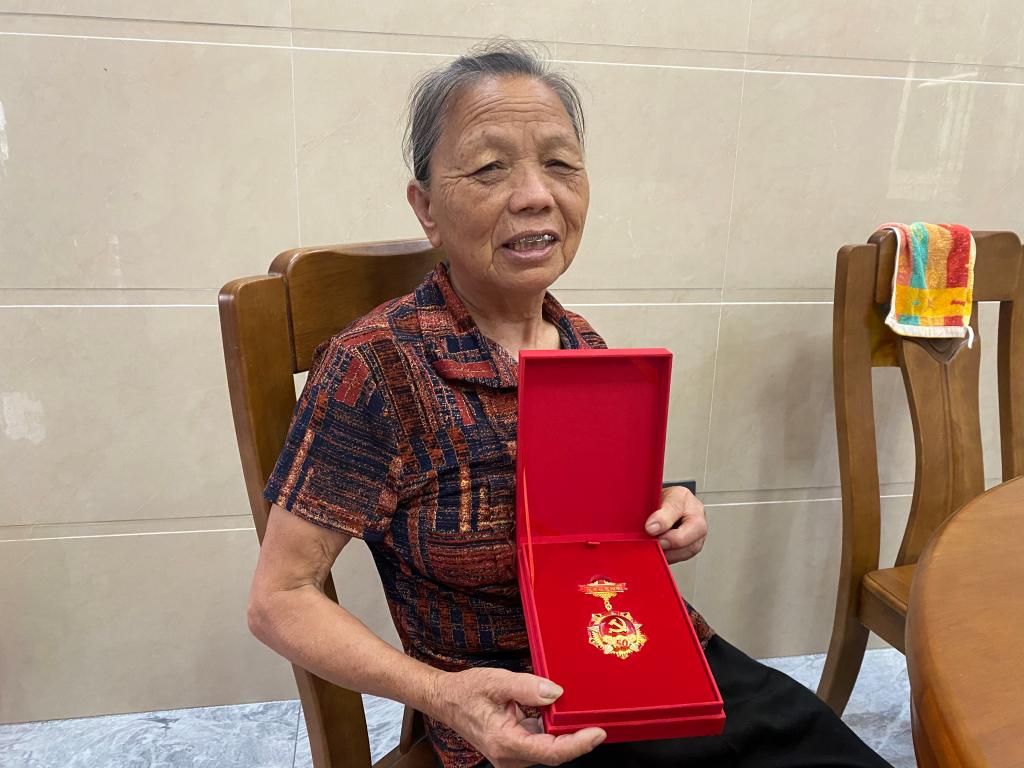 黃奶奶展示光榮在黨勛章