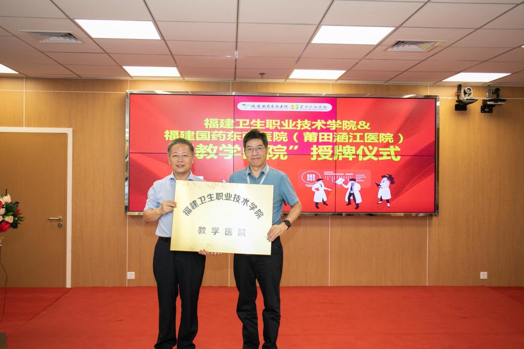7月12日上午,副校長陳貞健帶領(lǐng)藥學(xué)院副院長肖健、醫(yī)學(xué)技術(shù)系黨總支副書記林燕、醫(yī)學(xué)系馬清璇副教授、實習(xí)實訓(xùn)中心卞祖安科長一行5人赴莆田涵江醫(yī)院舉行教學(xué)醫(yī)院授牌儀式。莆田涵江醫(yī)院領(lǐng)導(dǎo)班子、職能科室負責(zé)人以及臨床教師代表出席儀式。
