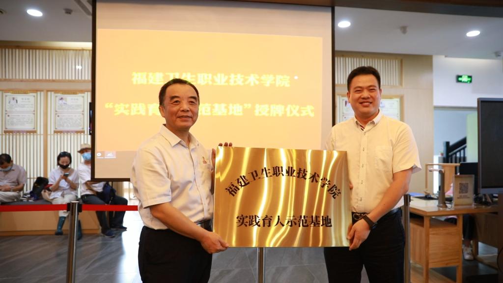 儀式上,游鋒向福建瑞來春健康管理有限公司授予“福建衛(wèi)生職業(yè)技術(shù)學(xué)院實(shí)踐育人示范基地”的牌匾。此次黨史學(xué)習(xí)教育,是我校與福建省知名中藥企業(yè)瑞來春健康管理有限公司的又一次深度合作,標(biāo)志著產(chǎn)教融合校企合作的進(jìn)一步內(nèi)涵延伸。
