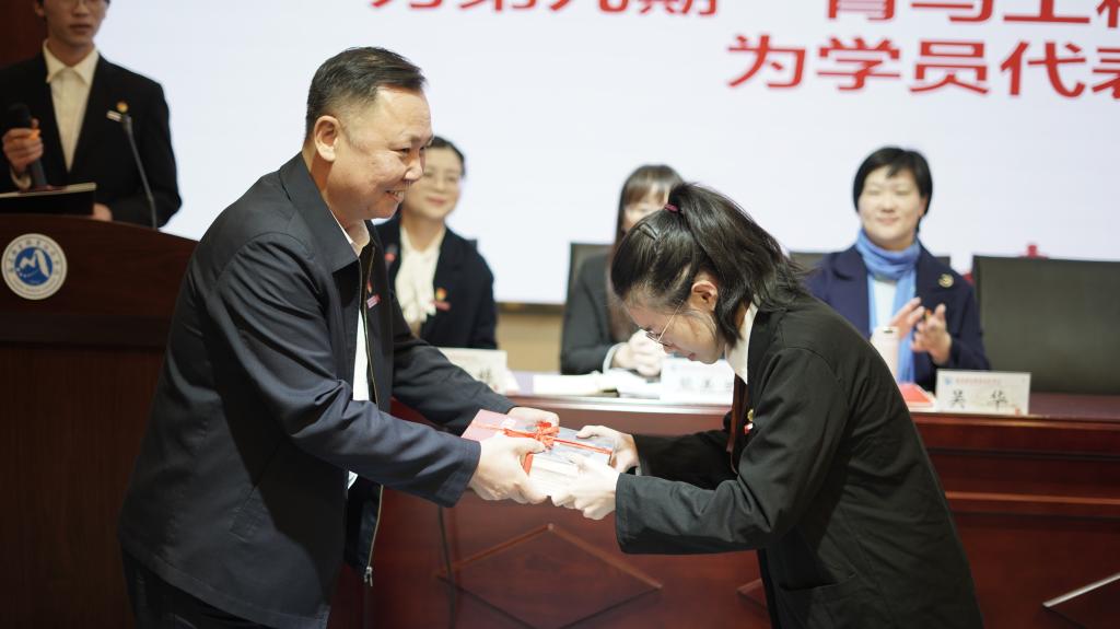 團(tuán)委副書記石瑜婷宣讀第八期“青馬工程”培訓(xùn)班結(jié)業(yè)名單與優(yōu)秀學(xué)員名單,與會領(lǐng)導(dǎo)為第八期學(xué)生代表頒發(fā)結(jié)業(yè)證書和優(yōu)秀學(xué)員證書。