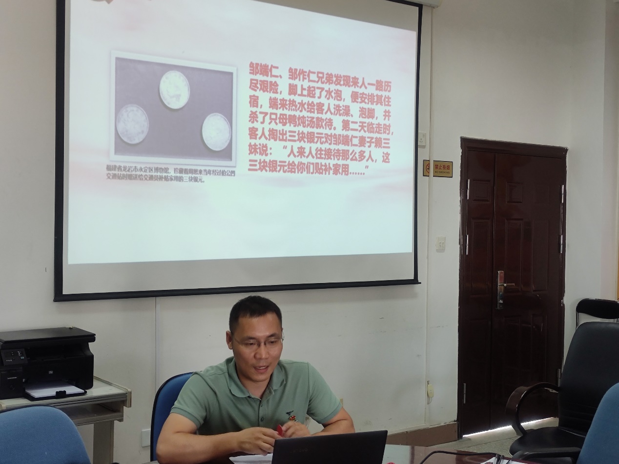 齊學(xué)黨史故事,賡續(xù)精神跟黨走。學(xué)生黨支部黨員齊聚醫(yī)學(xué)技術(shù)系會(huì)議室開展“學(xué)習(xí)黨史故事,賡續(xù)紅色精神”主題黨日活動(dòng)。支部書記曾慶才老師為支部全體黨員上黨史學(xué)習(xí)教育專題黨課,帶領(lǐng)同志們走進(jìn)“中央紅色交通線”入閩第一站伯公凹。黨課從“一盞燈、”“三銀元”、“七烈士”3個(gè)方面,講述了土地革命戰(zhàn)爭時(shí)期伯公凹群眾家族式地參加了交通線的工作,護(hù)送干部,傳遞情報(bào)和文件,采購和運(yùn)送物資。黨史故事學(xué)習(xí)帶領(lǐng)同志們追尋紅色記憶,蕩滌心靈。