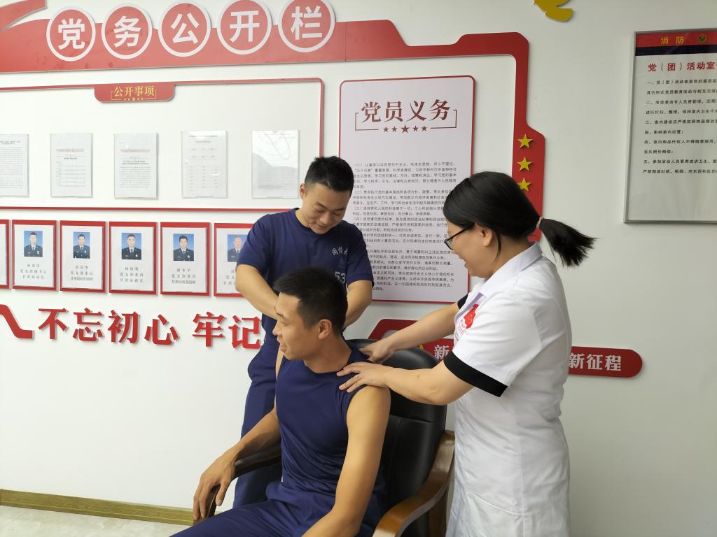 由于消防員職業(yè)的特殊性,他們大多存在頸肩、腰背疼痛等問(wèn)題,師生們?yōu)槠涮峁┩颇?、拔罐、刮痧等義診服務(wù);消防員表示此次學(xué)習(xí)收獲頗多,希望后期有更多的學(xué)習(xí)義診活動(dòng)。