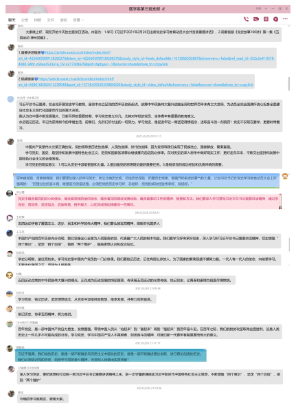 新春伊始,習近平總書記在黨史學習教育動員大會上發(fā)表了重要講話,闡述了開展黨史學習教育的重大意義,闡明了黨史學習教育的重點和工作要求,對黨史學習教育進行了全面動員和部署。醫(yī)學系第三黨支部積極響應中央號召,于2021年2月28日通過線上集中學習的形式,開展“學黨史、悟思想”主題黨日活動。本次活動由支部書記陳銘主持。