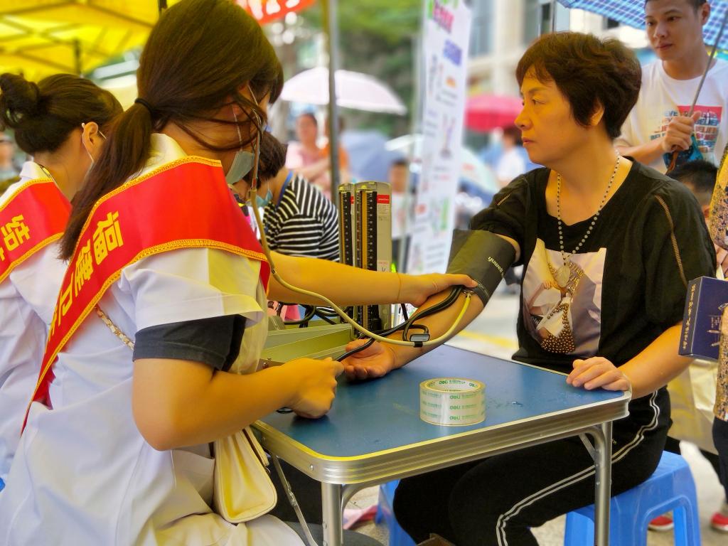 用專業(yè)知識,解答居民對常見病的疑惑。在義診點(diǎn),志愿者認(rèn)真給每位前來參與的居民記錄血壓測量參數(shù),并詳細(xì)詢問居民日常測量的血壓值,掌握血壓數(shù)值變化,以便更清楚地了解他們的血壓情況,提供合適的健康宣教。針對社區(qū)居民闡述的一些身體上的不適與疑問,志愿者適時開展心腦血管疾病、糖尿病、肺結(jié)核等常見病的宣教,給予合理的飲食建議,提醒居民適當(dāng)鍛煉并保持愉悅的心情,提高居民對常見病的重視度,提升健康意識。