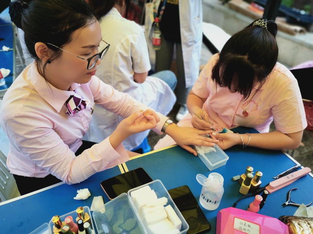 多角度宣傳,多形式互動。志愿服務(wù)隊通過設(shè)立人形立牌、懸掛宣傳條幅、發(fā)放防治結(jié)核病宣傳單、利用小游戲講解結(jié)核病防治知識等方式增強(qiáng)宣傳的趣味性,通過有獎問答贏雨傘、保溫杯、免費(fèi)美甲、免洗手消毒液等禮品的形式,調(diào)動群眾的參與度,提高社區(qū)居民對結(jié)核病知識的關(guān)注度及結(jié)核病防治知識的知曉率。志愿者通過宣教,將關(guān)注居民健康和肺結(jié)核的防治宣傳落實到實處,促使人們共同行動起來關(guān)愛生命、共抗結(jié)核,形成健康生活的社會氛圍。