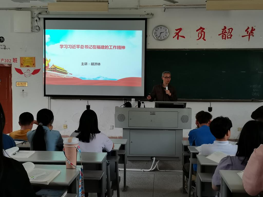 2021年4月23日下午,胡濟(jì)林老師在護(hù)理107教室為20康復(fù)301、302班舉行“學(xué)習(xí)習(xí)近平總書記在福建的工作精神”專題宣講。宣講中,胡濟(jì)林首先簡要介紹了習(xí)近平總書記在閩工作17年半的基本情況,接著從“為官一任 造福一方”“重視發(fā)展高等教育”“懲治腐敗 整頓吏治”等三個(gè)方面講述習(xí)近平總書記當(dāng)年在福建的一些感人故事以及從中折射出習(xí)近平總書記的治國理念和工作作風(fēng)。胡濟(jì)林通過理實(shí)結(jié)合的方法,用抑揚(yáng)頓挫的語言,再現(xiàn)習(xí)近平總書記當(dāng)年場景,讓同學(xué)們感受到濃烈的公仆情懷、求實(shí)作風(fēng)、奮斗精神。