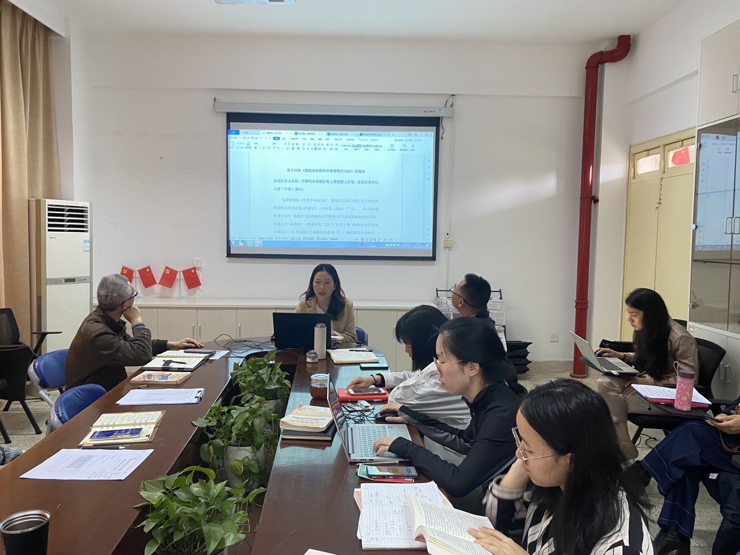 會上,馬院辦公室主任楊盈帶領(lǐng)全體教師逐一解讀相關(guān)文件,此次學(xué)習(xí)不僅加強了馬院全體教師對學(xué)校關(guān)于職稱評聘相關(guān)規(guī)章制度的了解,更是進一步強化教師的工作紀律以及責(zé)任意識。
