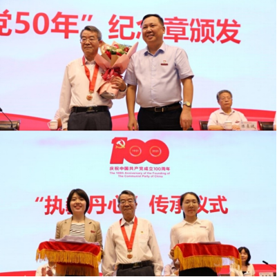 6月24日下午,學(xué)校召開慶祝中國共產(chǎn)黨成立100周年暨“兩優(yōu)一先”表彰大會,校黨委書記曾武祈為老黨員代表頒發(fā)了“光榮在黨50年”紀(jì)念章和鮮花,并舉行了新、老教師黨員“執(zhí)教丹心”的傳承儀式。紀(jì)念章頒發(fā)儀式莊重而簡樸,光輝的紀(jì)念章代表著以習(xí)近平同志為核心的黨中央對老黨員教師們的關(guān)懷和溫暖,映照著老黨員教師為教育事業(yè)堅(jiān)守的不變初心。