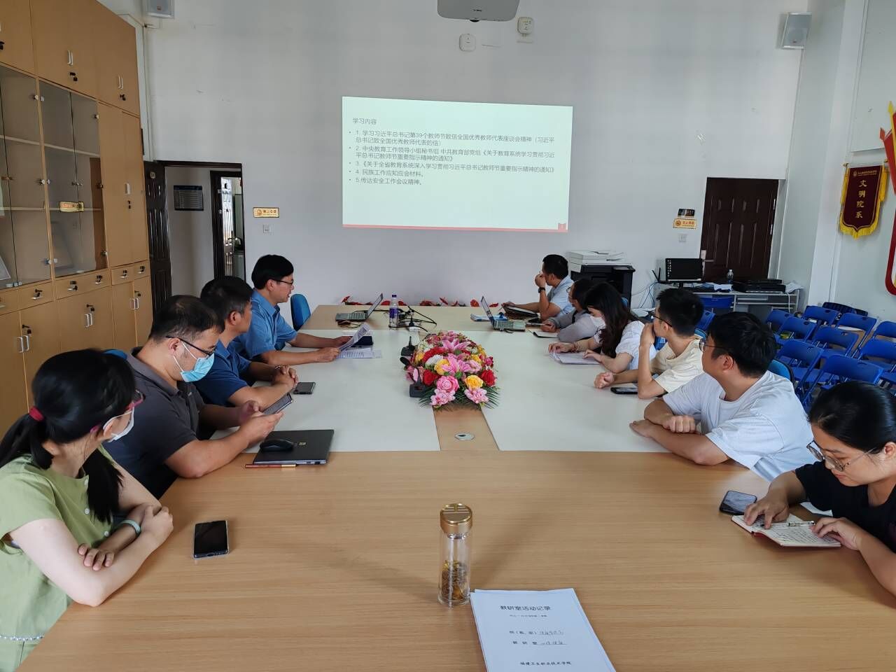 為深入學(xué)習(xí)貫徹習(xí)近平總書記教師節(jié)重要指示精神,大力弘揚教育家精神,9月21日,健康管理系黨總支理論學(xué)習(xí)中心組在系部會議室開展理論學(xué)習(xí),本次會議由健康管理系黨總支書記葉海主持。