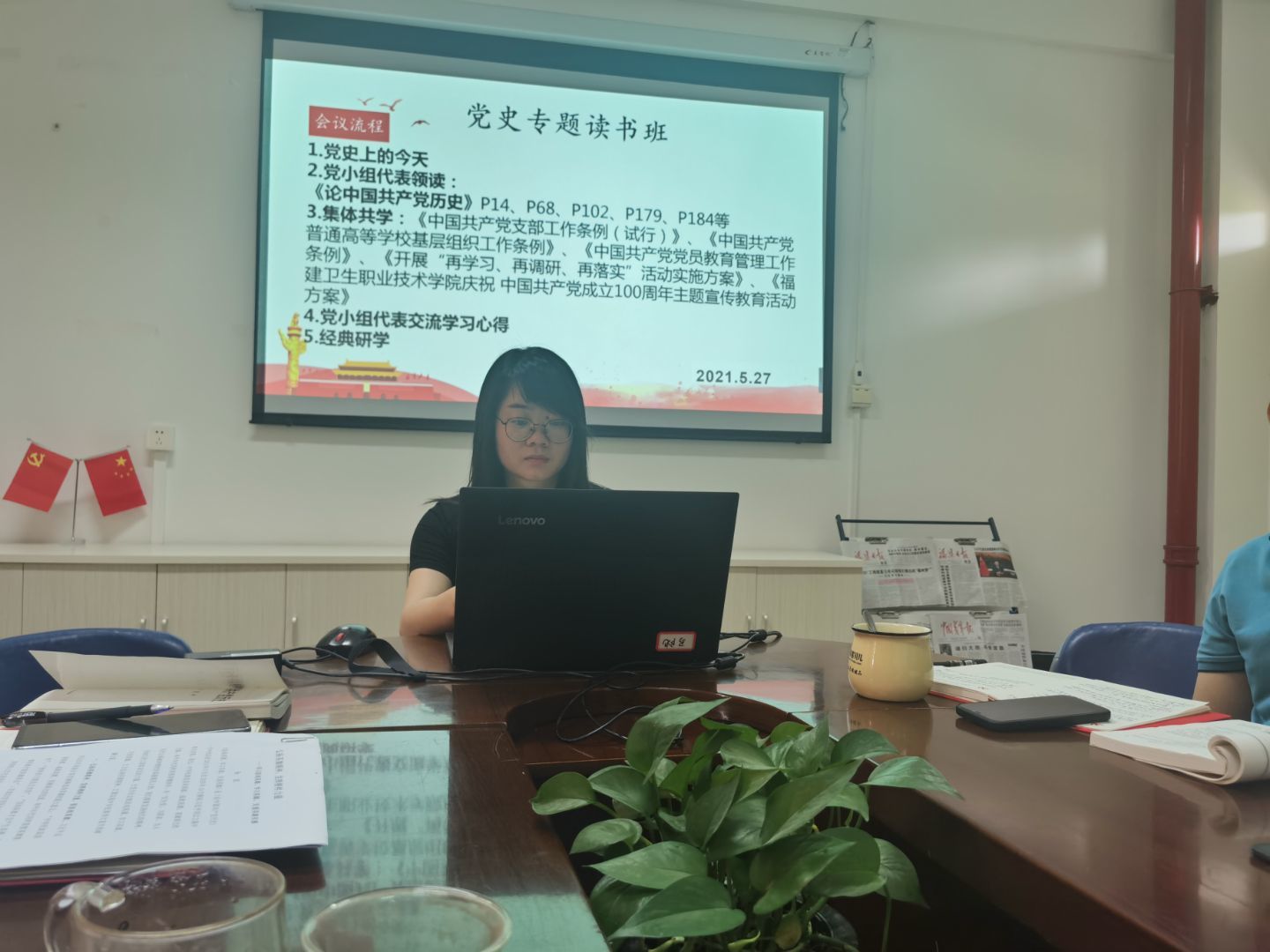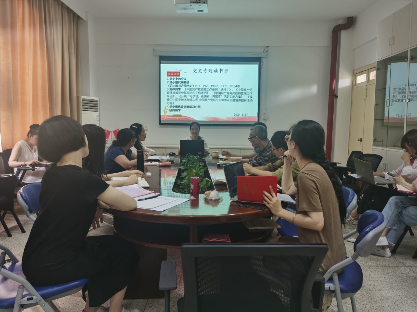 為深入學(xué)習(xí)黨史,傳承紅色基因,擔(dān)當(dāng)初心使命,2021年5月27日直屬馬克思主義學(xué)院黨支部第二黨小組在會議室107進(jìn)行黨史學(xué)習(xí)。學(xué)習(xí)活動由黨小組組長來朋珍主持。