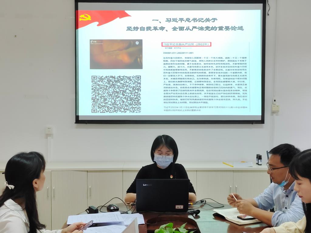 隨后,羅蕓同志分享了學習《習近平總書記關于堅持自我革命、全面從嚴治黨的重要論述》的心得體會。她指出,自我革命不是空洞的口號,要體現(xiàn)在現(xiàn)實的、有旺盛生命力的各項具體行動中。我們要著力強化政治建設、思想建設、組織建設、作風建設、紀律建設;以學風建設為重點,持續(xù)促進作風和文風轉變,發(fā)揮好決策支持的參謀助手作用;以提升支部的組織力為抓手,不斷強化政治職能,規(guī)范組織生活,創(chuàng)新活動方式,將支部建設成宣傳黨的主張、貫徹黨的決定、團結動員群眾的堅強戰(zhàn)斗堡壘。