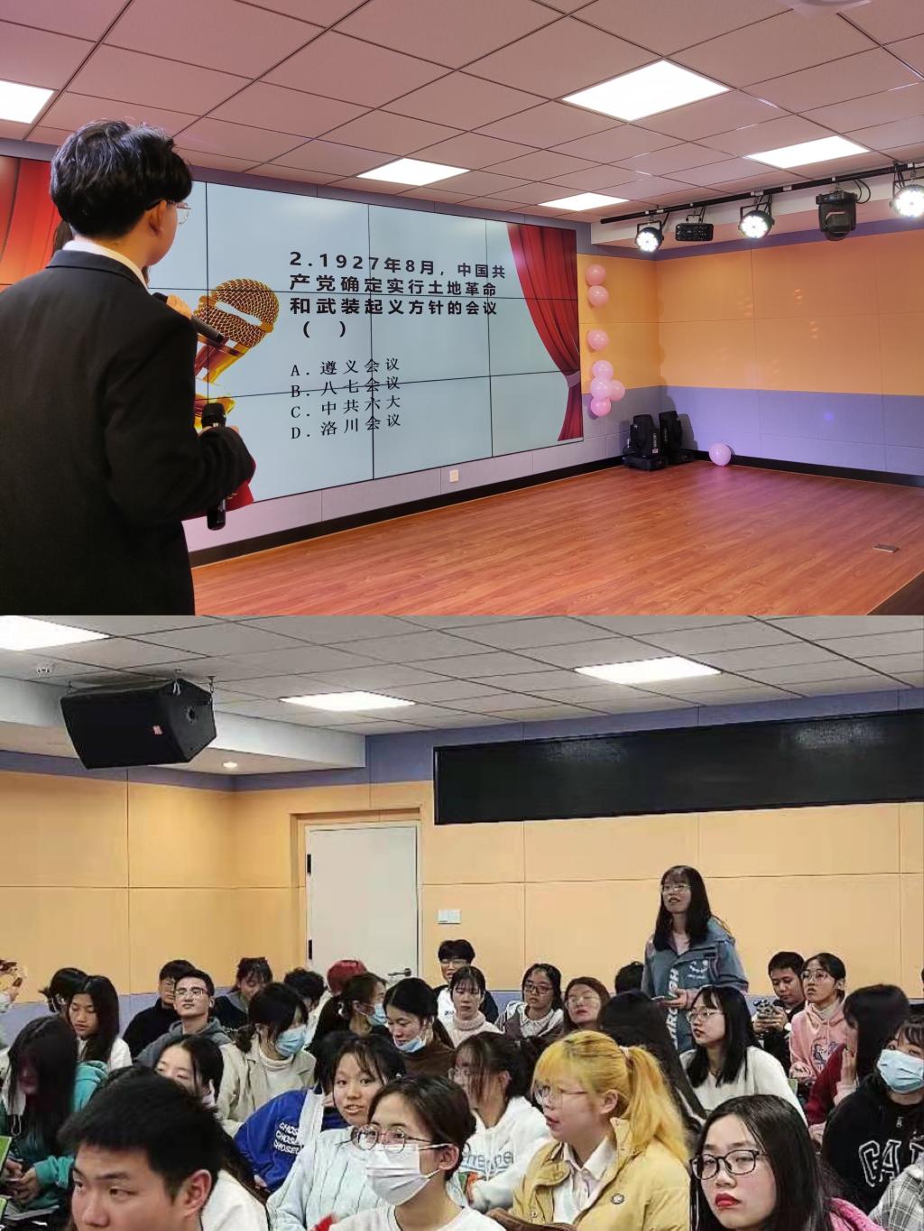 穿插在比賽間隙的黨史答題環(huán)節(jié)將觀眾們的熱情進(jìn)一步點(diǎn)燃,讓同學(xué)們?cè)诟惺苊?、欣賞美的同時(shí)收獲黨史知識(shí)、陶冶情操。